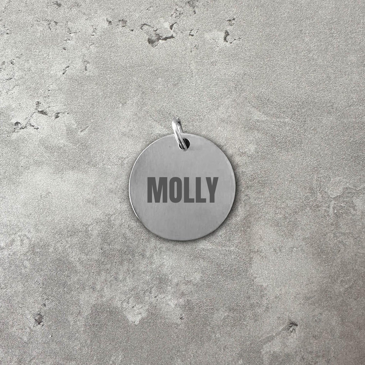 Stainless steel name tag with laser engraving. A key ring is included...