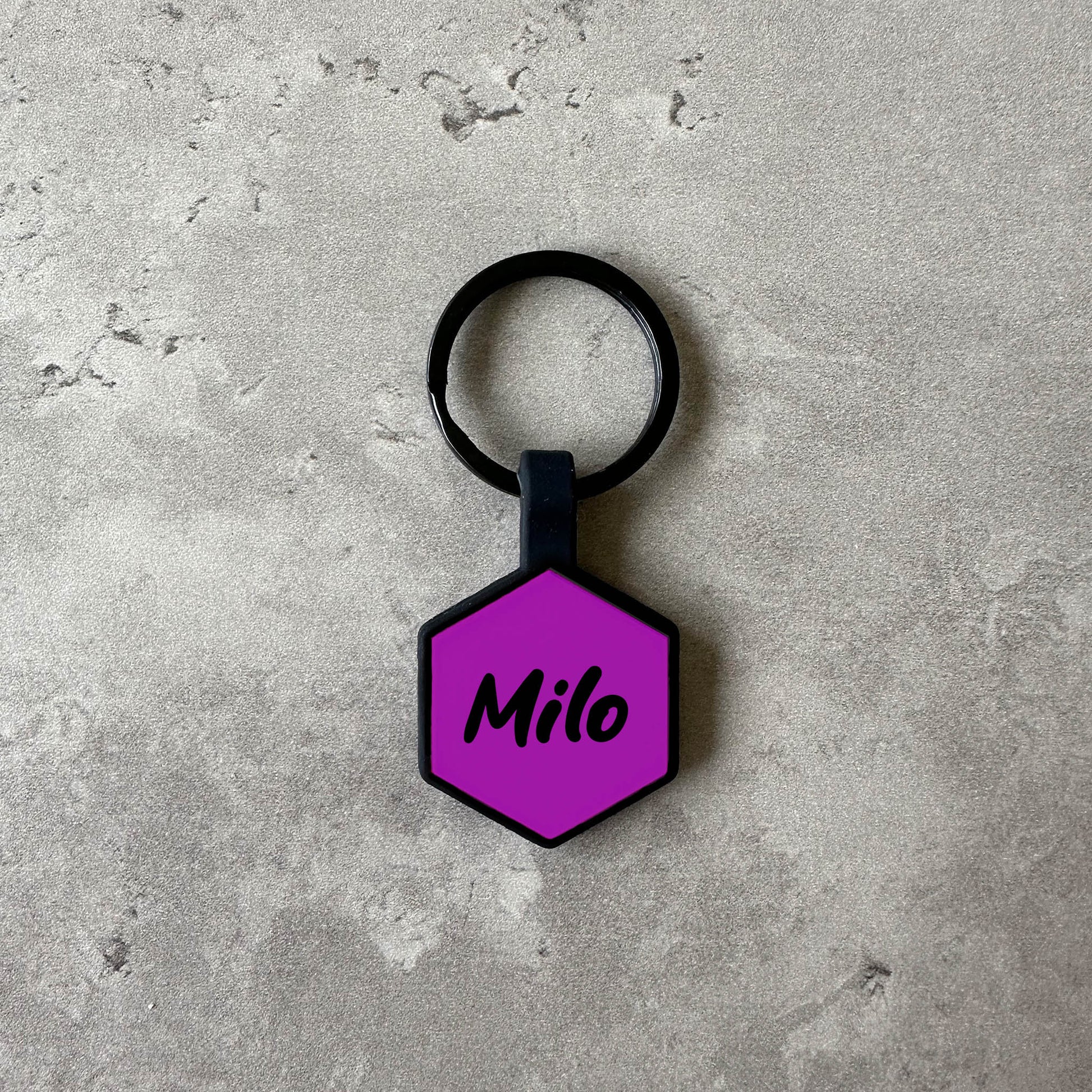 Each name tag is made from 100% silicone, with a black key ring to match any necklace. Our tags are durable, waterproof, easy to clean, and colorfast, meaning you and your best friend can be sure this tag will last through any outing. In addition, thanks to its material, it is completely silent, in other words no pinging.
