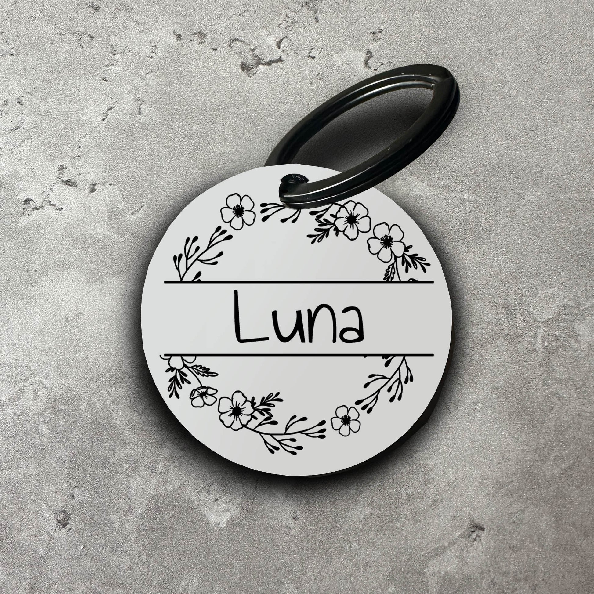 Namnbricka i akryl till hund - Motiv med blommor #3