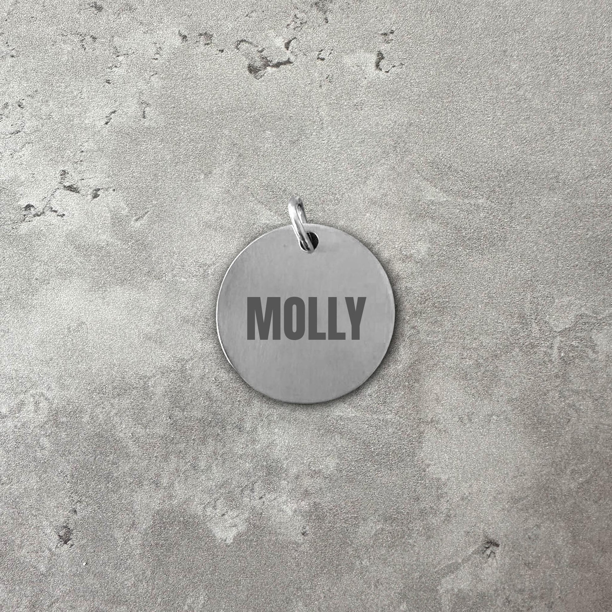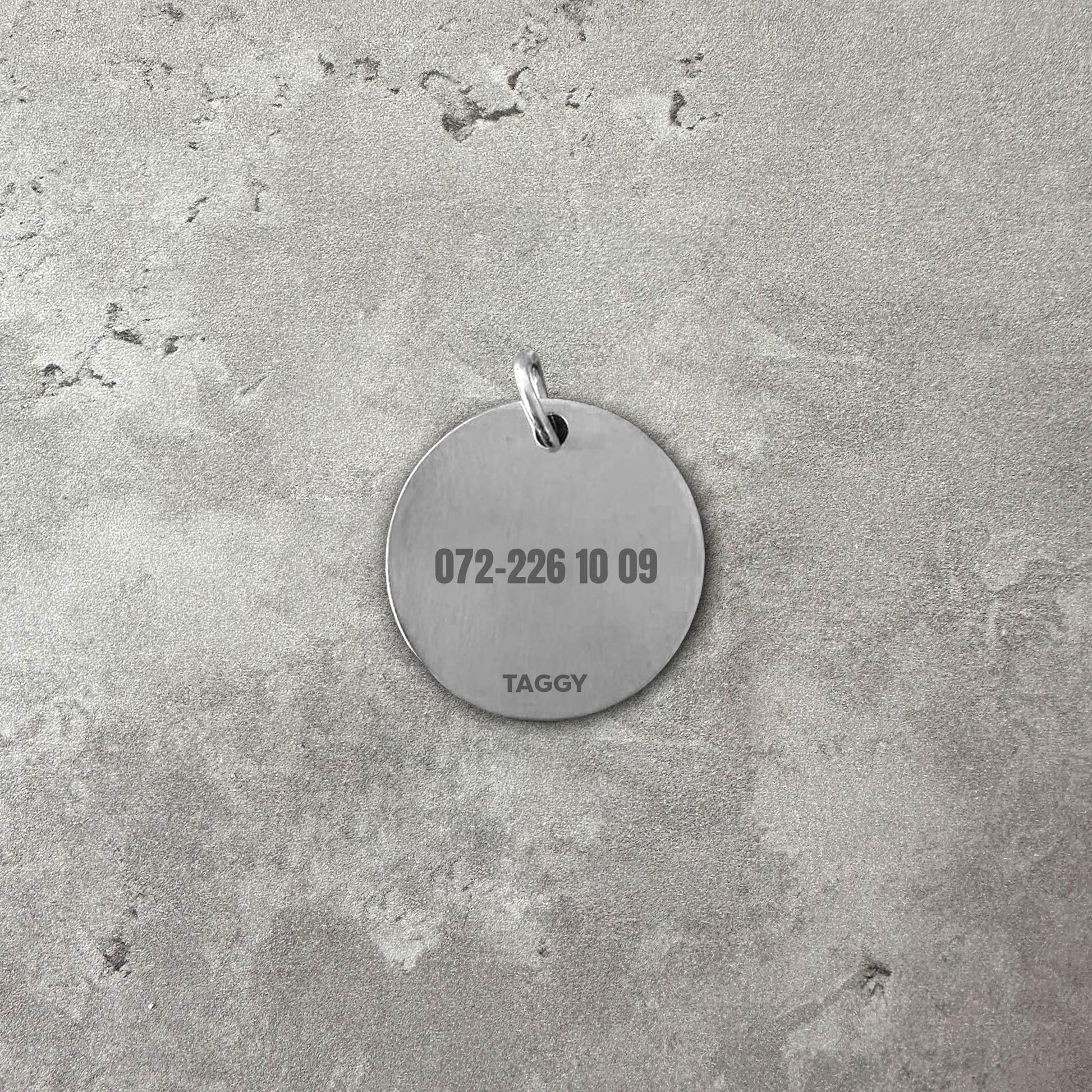 Stainless steel name tag with laser engraving. A key ring is included to fit any collar. Our classic steel tag is stylish, waterproof and easy to clean. Which means you and your best friend can be sure that the name and phone number are clearly visible.
