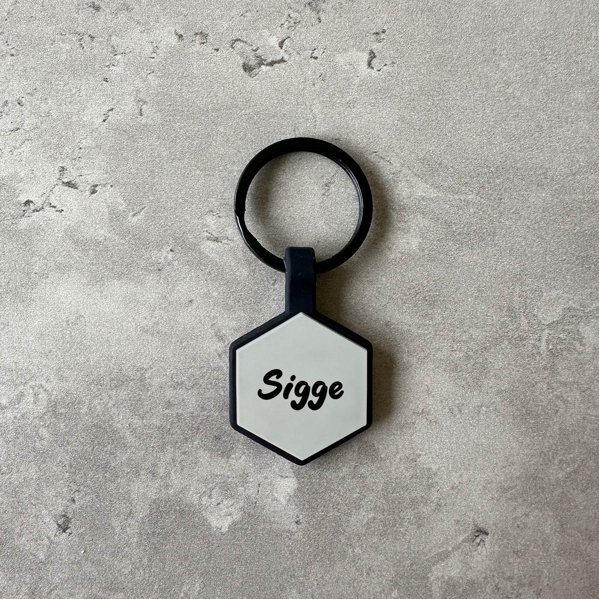 Våra silikonbrickor kommer med en svart stor nyckelring som fäste som gör det enkelt att fästa på halsbandet.