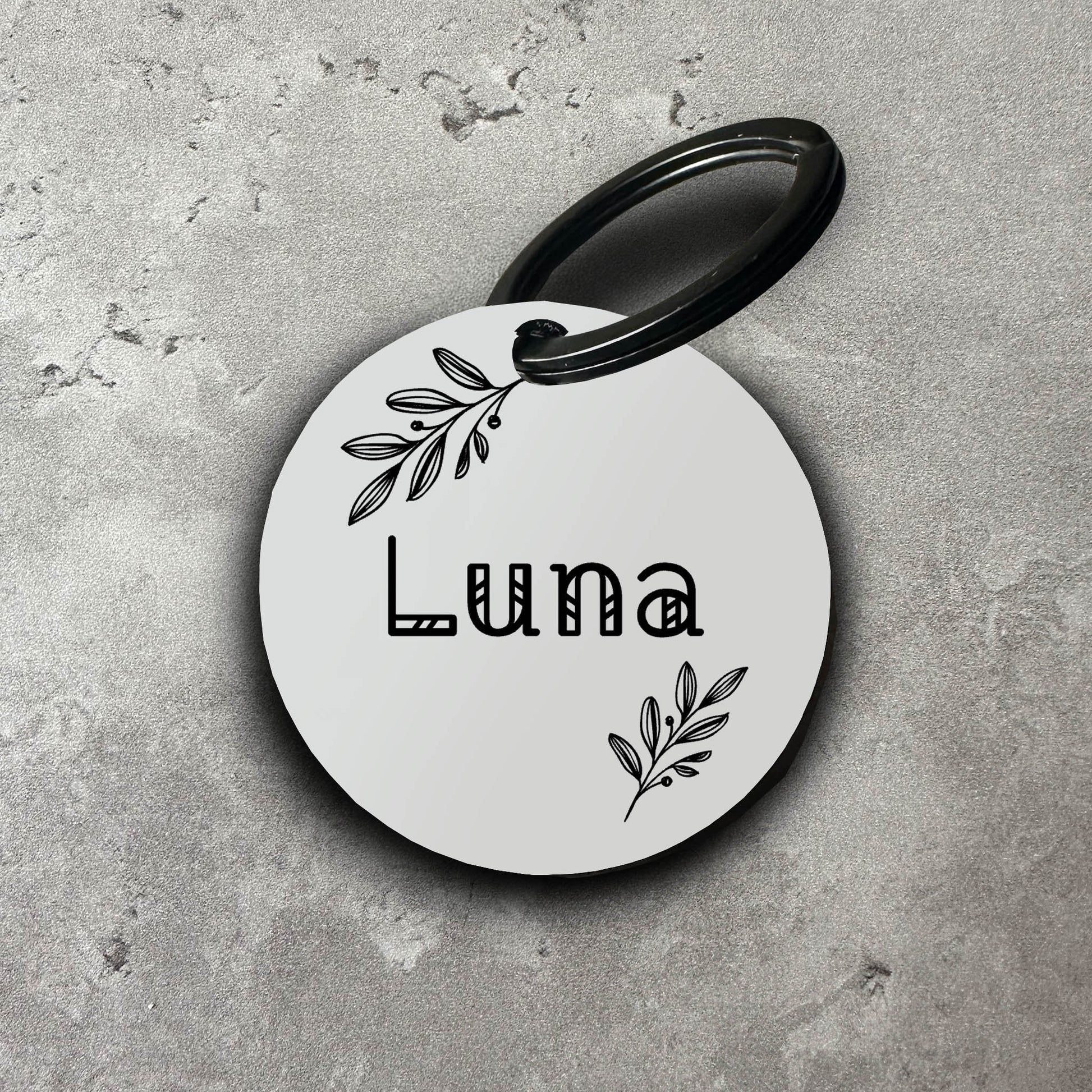 Prisvärd namnbricka som är tillverkad i slitstark akryl och levereras med en svart nyckelring som passar de flesta halsband och selar. Våra akryltaggar är hållbara, lätta, vattentåliga och enkla att rengöra, vilket gör att du och din bästa vän kan känna er trygga med att brickan håller för både vardag och äventyr.
