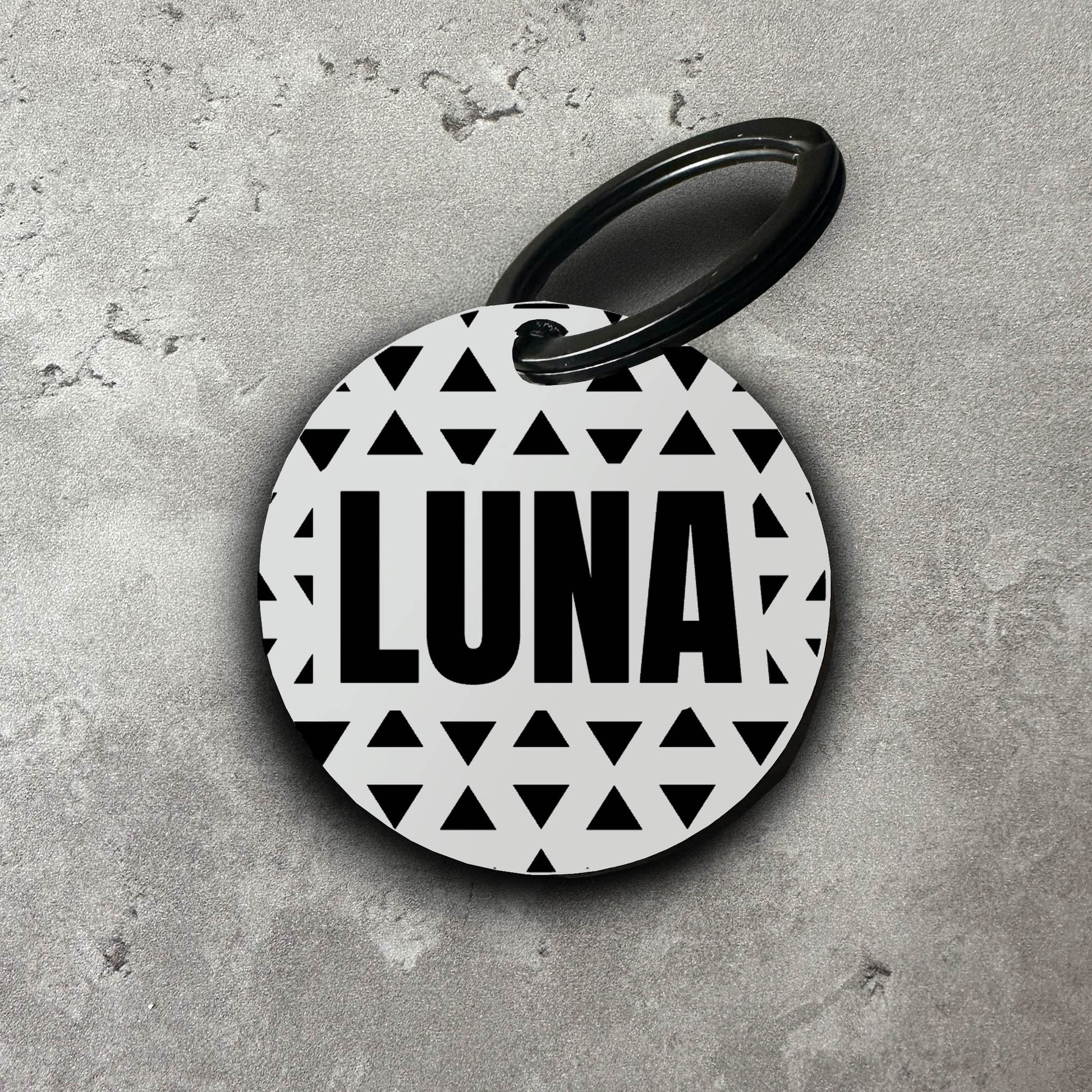 Namnbricka i akryl till hund - Motiv med trianglar #2