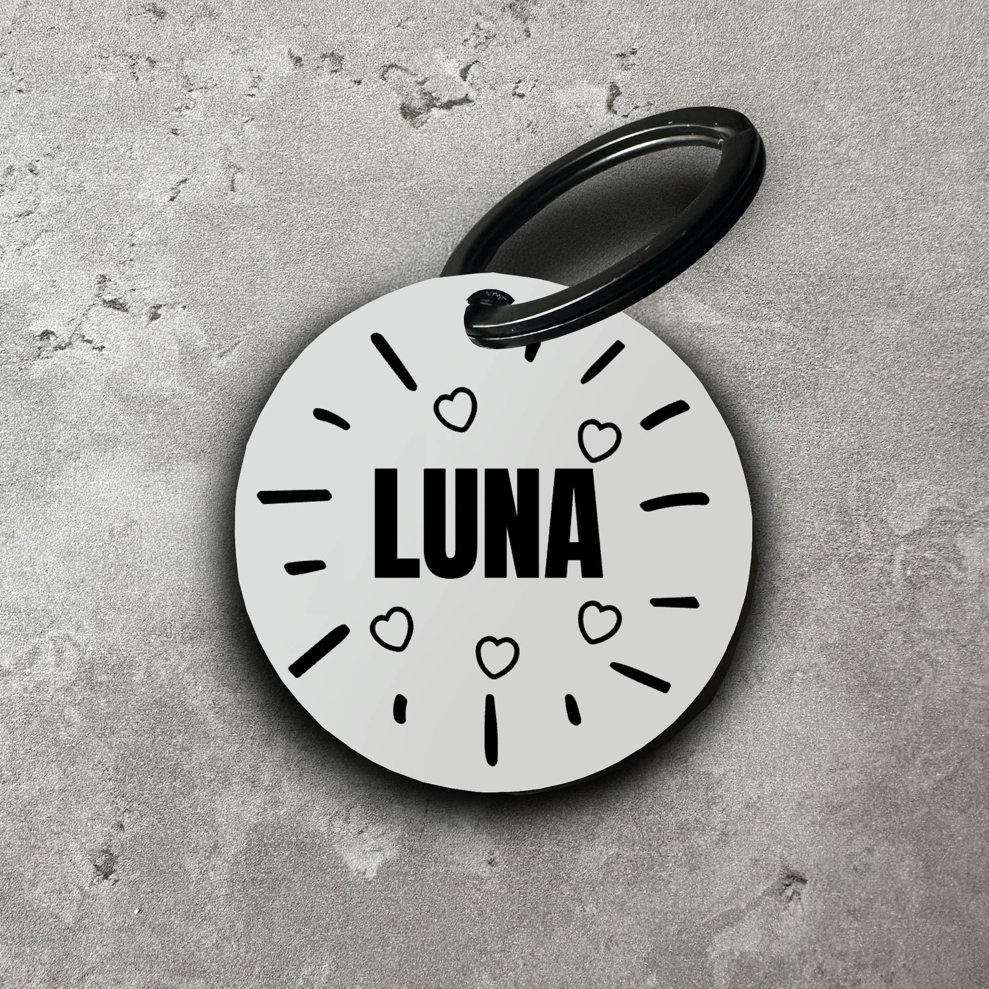 Prisvärd namnbricka som är tillverkad i slitstark akryl och levereras med en svart nyckelring som passar de flesta halsband och selar. Våra akryltaggar är hållbara, lätta, vattentåliga och enkla att rengöra, vilket gör att du och din bästa vän kan känna er trygga med att brickan håller för både vardag och äventyr.