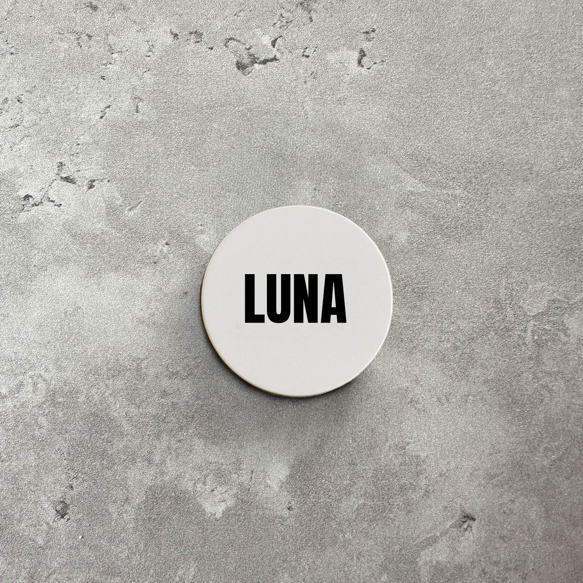 Ge din hall en personlig och stilren touch med vår runda självhäftande namnbricka. Lasergraverad skylt som är perfekt att placera ovanför krokar för koppel, selar eller var du än vill skapa en personlig plats för din fyrbenta vän.