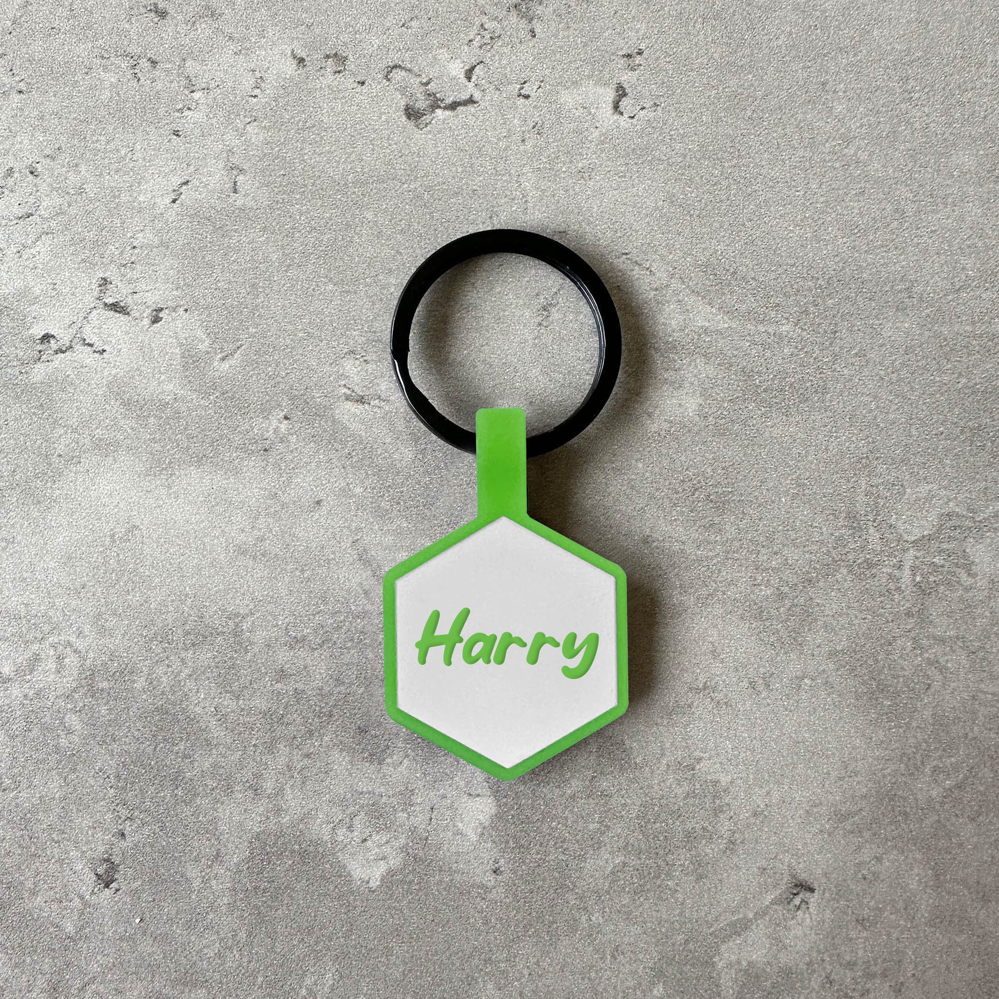 Varje namnbricka är tillverkad av 100% silikon, med en svart nyckelring för att passa vilket halsband som helst. Våra taggar är hållbara, vattentäta, lätta att rengöra och färgbeständiga, vilket innebär att du och din bästa vän kan vara säkra på att denna tagg kommer att hålla genom alla utflykter. Dessutom är den tack vare sitt material helt ljudlös, med andra ord inget plingande.